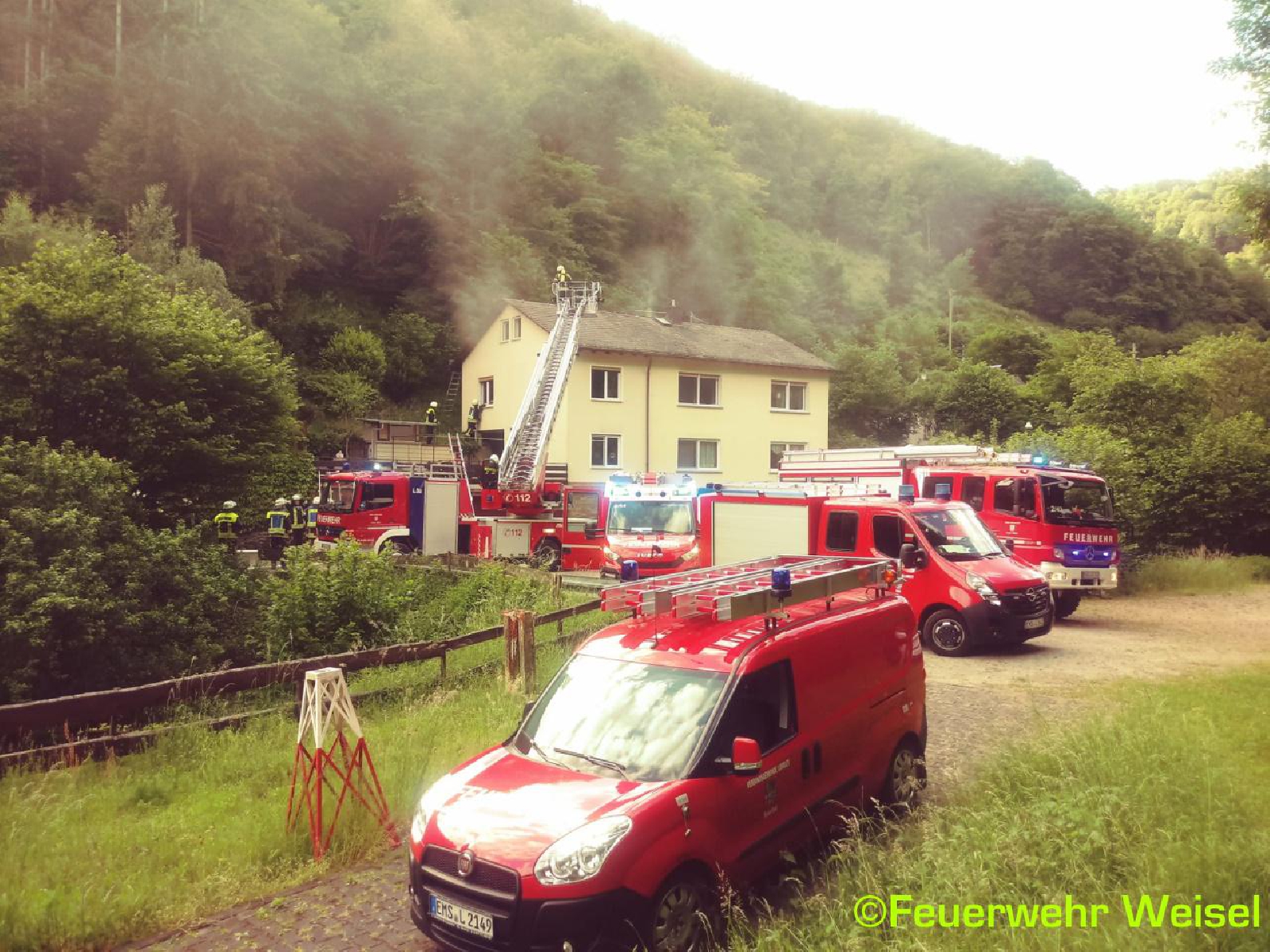 Um kurz nach 8 Uhr wurden die Feuerwehren Sauerthal, Kaub, Weisel und Lorch sowie der Rettungsdienst mit dem Stichwort "B2, Rauchentwicklung im Gebäude" nach Sauerthal alarmiert. Die ersteintreffenden Kräfte meldeten bei der Lage auf Sicht bereits eine starke Verrauchung im Außenbereich. Im betroffenen Gebäude brannte ein Elektroherd, der durch den Angriffstrupp schnell abgelöscht werden konnte. Durch die Ausbreitung des Brandrauchs auf mehrere Etagen wurden viele Atemschutzgeräteträger benötigt, sodass die Einheit St. Goarshausen mit zusätzlichen AGT nachalarmiert wurde. Im Verlauf des Einsatzes wurde daraufhin die Zimmerdecke geöffnet und das Gebäudeinnere mit Wärmebildkameras auf Glutnester kontrolliert sowie das gesamte Gebäude mittels Überdrucklüfter rauchfrei gemacht. Die Drehleiter aus Lorch wurde genutzt, um das Dach von außen zu kontrollieren. Nach ca. 3,5h war der Einsatz beendet.